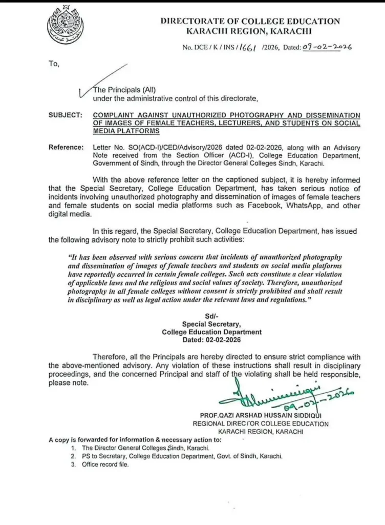 اب گرلز کالجوں سے فیس بک کا اسٹیٹس بنے گا نہ انسٹا کی ریل اور نہ ہی بنے گی ٹک ٹاک کی ویڈیو ۔ کیونکہ سندھ حکومت کے محکمہ کالجز نے کیا ہےبڑا فیصلہ اور لگادی ہے لڑکیوں کے تمام سرکاری کالجوں میں فوٹوگرافی پر پابندی ۔محکمہ کالج ایجوکیشن کی جانب سے جاری نوٹی فکیشن […]