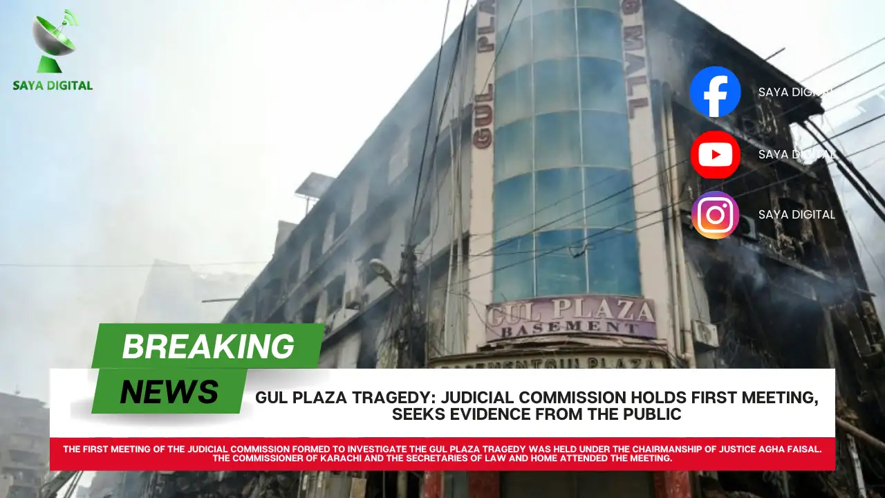 سانحہ گل پلازہ کی تحقیقات کے لیے قائم جوڈیشل کمیشن کا پہلا اجلاس جسٹس آغا فیصل کی سربراہی میں منعقد ہوا، جس میں کمشنر کراچی اور سیکریٹری قانون و داخلہ نے شرکت کی۔