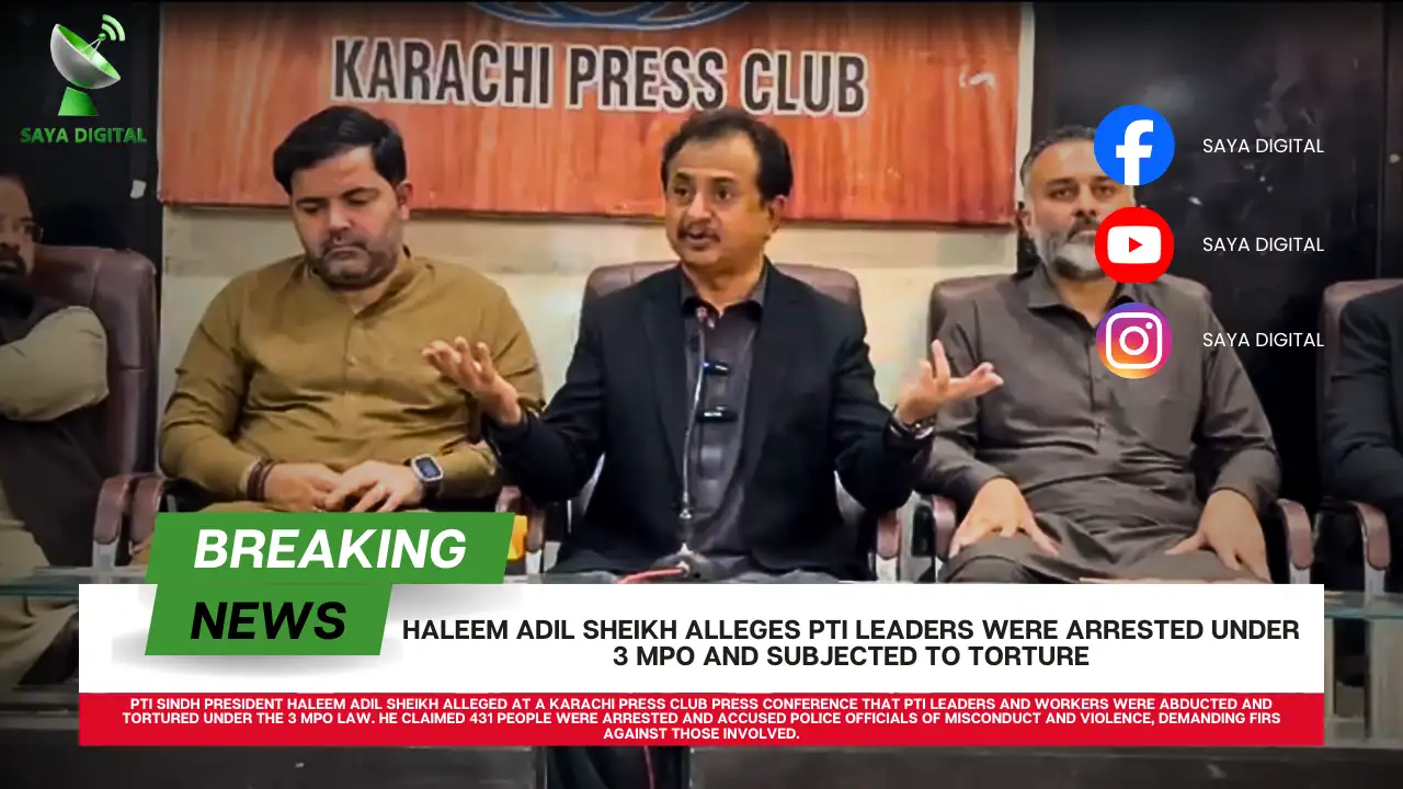 پی ٹی آئی سندھ کے صدر حلیم عادل شیخ کی کراچی پریس کلب میں اہم پریس کانفرنس پاکستان تحریک انصاف سندھ کے صدر حلیم عادل شیخ نے کراچی پریس کلب میں اہم پریس کانفرنس کرتے ہوئے الزام عائد کیا ہے کہ پی ٹی آئی کے رہنماؤں اور کارکنان کو تھری ایم پی او کے تحت اغوا اور بدترین تشدد کا نشانہ بنایا گیا۔ پریس کانفرنس میں پی ٹی آئی کراچی کے صدر راجہ اظہر، سینیئر نائب صدر فہیم خان، پارلیمانی لیڈر شبیر قریشی، ایڈووکیٹ شجاعت علی خان، ایڈووکیٹ خان زمان، راؤ اعظم، ایڈووکیٹ جی ایم آزاد، یاسر بلوچ سمیت دیگر رہنما شریک تھے۔ حلیم عادل شیخ نے کہا کہ وہ آج بڑے دکھی دل کے ساتھ عوام کی عدالت میں پیش ہو رہے ہیں۔ ان کا کہنا تھا کہ پیپلز پارٹی کی حکومت نے سرکاری ایم پی او کے تحت 431 شہریوں کو گرفتار کیا، جن میں سے 272 افراد سینٹرل اور ملیر جیل جبکہ سو سے زائد کارکنان تھانوں سے رہا کروائے گئے۔ انہوں نے الزام لگایا کہ کارکنان کو ہوٹلوں اور دکانوں سے اٹھایا گیا اور بعض مقامات پر پیسے لے کر شہریوں کو چھوڑا گیا۔ انہوں نے کہا کہ تحریک تحفظ آئین پاکستان کی جانب سے پرامن ہڑتال کا اعلان کیا گیا تھا اور عوام سے گھروں میں رہنے کی اپیل کی گئی تھی، آٹھ فروری کو نہ کوئی زبردستی ہوئی اور نہ کوئی توڑ پھوڑ۔ ان کے مطابق عوام نے اپنے ووٹ پر ڈاکے کے خلاف خود ہڑتال کو کامیاب بنایا۔ حلیم عادل شیخ نے الزام لگایا کہ راجہ اظہر اور فہیم خان کو ڈی ایس پی خوشنود اور دیگر پولیس افسران نے کورنگی کے عوامی تھانے میں بدترین تشدد کا نشانہ بنایا۔ انہوں نے کہا کہ پی ٹی آئی کے وکلا خان زمان اور جی ایم آزاد کے ساتھ بھی بدسلوکی کی گئی، موبائل فون چھینے گئے اور تشدد کر کے تھانے سے نکال دیا گیا۔ انہوں نے مطالبہ کیا کہ ایس ایس پی کورنگی فدا جانوری، ڈی ایس پی خوشنود اور دیگر اہلکاروں کے خلاف ایف آئی آر درج کی جائے۔ حلیم عادل شیخ نے کہا کہ اگر سندھ حکومت میں ذرا سی بھی اخلاقی جمہوریت باقی ہے تو ملوث پولیس افسران کے خلاف فوری کارروائی کی جائے۔ اس موقع پر سینیئر نائب صدر کراچی فہیم خان نے کہا کہ انہیں نہ کسی احتجاج اور نہ ہی ریلی سے گرفتار کیا گیا بلکہ راستے میں روکا گیا، آنکھوں پر پٹیاں باندھ کر بدترین تشدد کیا گیا۔ انہوں نے کہا کہ ان کے ساتھ ایسا سلوک کیا گیا جیسے وہ ریاست دشمن ہوں۔ پی ٹی آئی کراچی کے صدر راجہ اظہر نے کہا کہ تحریک تحفظ آئین پاکستان کی ہڑتال میں کوئی زبردستی شامل نہیں تھی۔ انہوں نے الزام لگایا کہ پولیس نے انہیں بغیر وارنٹ گرفتار کر کے تشدد کیا۔ راجہ اظہر نے کہا کہ وہ انصاف کے لیے عدالت سے رجوع کریں گے اور پولیس افسران کے خلاف کارروائی کا مطالبہ کرتے ہیں۔ آخر میں پی ٹی آئی رہنماؤں نے واضح کیا کہ پاکستان تحریک انصاف ختم نہیں ہوئی، عوام نے آٹھ فروری کو اپنا فیصلہ سنا دیا ہے اور وہ قانونی جدوجہد جاری رکھیں گے۔