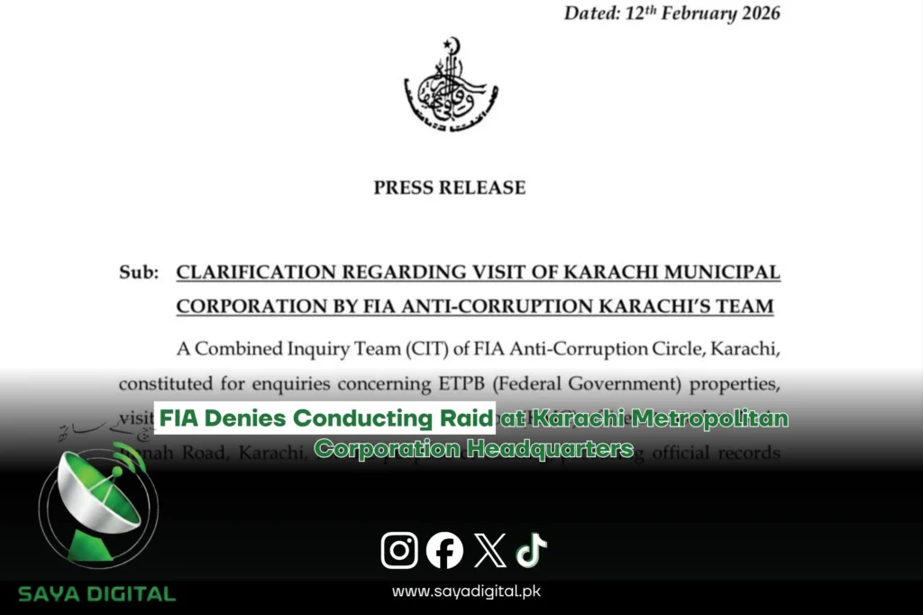 فیڈرل انویسٹی گیشن ایجنسی اینٹی کرپشن سرکل نے وضاحت جاری کرتے ہوئے چھاپے کی سختی سے تردید کردی ہے۔ ایف آئی اے کے مطابق کچھ الیکٹرانک چینلز اور سوشل میڈیا پلیٹ فارمز پر حقائق کے برعکس خبریں نشر کی گئیں جن میں اس سرکاری دورے کو غلط طور پر “چھاپہ” قرار دیا گیا۔ ترجمان ایف […]