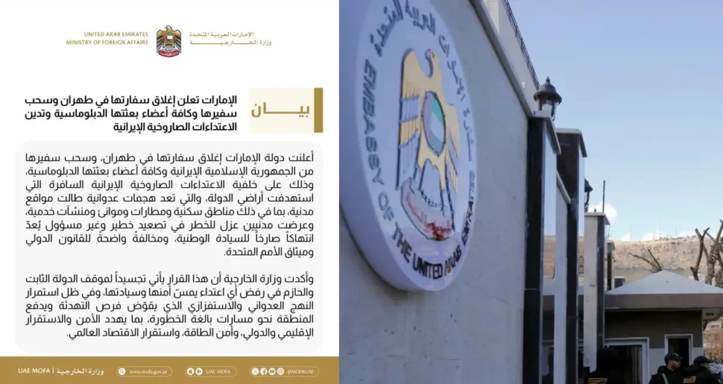 متحدہ عرب امارات نے تہران میں سفارتخانہ بند کردیا، سفیر سمیت عملہ واپس