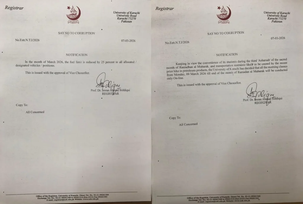 مہنگا ایندھن: جامعہ کراچی میں مارننگ کلاسزآن لائن، پٹرول کوٹہ میں 25 فیصد کمی