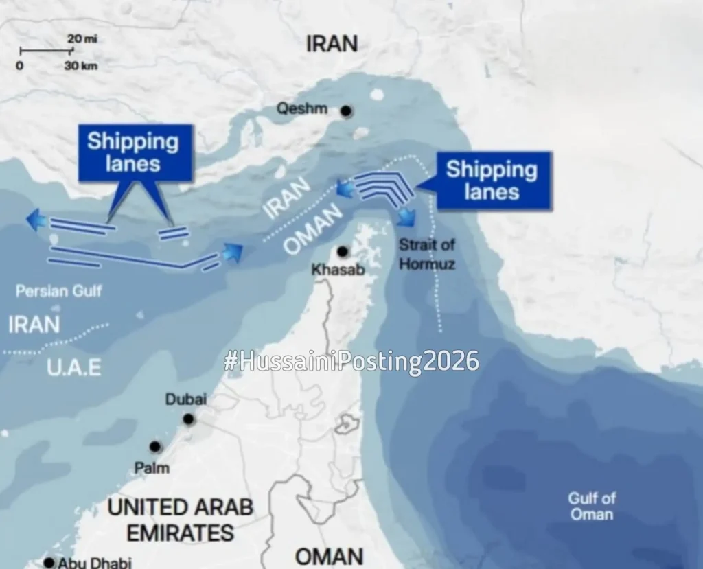 آبنائے ہرمز یا اسٹریٹ آف ہرمز سب سے کم مقام پر تقریباً 33 کلومیٹر چوڑا ہے لیکن اس کی گہرائی ہر جگہ اتنی نہیں کہ بڑے جہاز آسانی سے گزر سکیں۔ اسی لیے تیل بردار اور مال بردار جہازوں کی آمدورفت کے لیے ٹریفک سیپریشن اسکیم بنائی گئی ہے جس میں داخلے اور اخراج کے لیے الگ الگ راستے مقرر ہیں۔ ہر راستہ صرف تقریباً تین کلومیٹر چوڑا ہے جبکہ ان کے درمیان مزید تین کلومیٹر کا بفر زون رکھا گیا ہے تاکہ جہاز آپس میں نہ ٹکرائیں۔ یعنی دنیا کی تقریباً 20 فیصد تیل اور گیس کی سپلائی محض 6 کلومیٹر کے اس تنگ راستے پر منحصر ہے۔