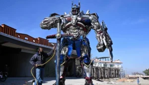 اسلام آباد کے مضافات میں واقع ایک ورکشاپ میں پاکستانی فنکار احتشام جدون پرزہ جات اور ناکارہ گاڑیوں کے لوہے کو جوڑ کر “ٹرانسفارمرز” فلموں